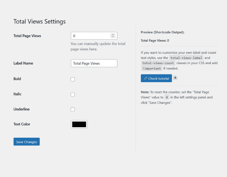 • CSS classes: total-views-label and total-views-count for advanced styling.